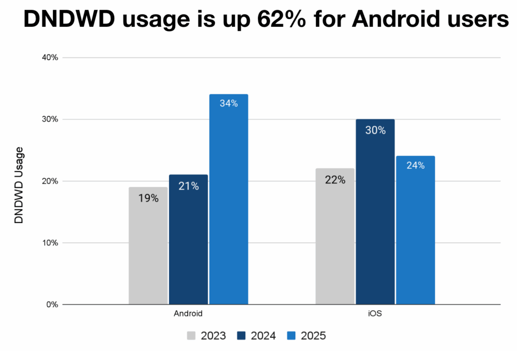 While awareness was once the primary reason for failing to activate DNDWD, it’s no longer the main barrier. In 2024, 80% of people said the reason they didn’t use the feature was simply because they didn’t know it existed. In 2025, that number fell to 35%.
