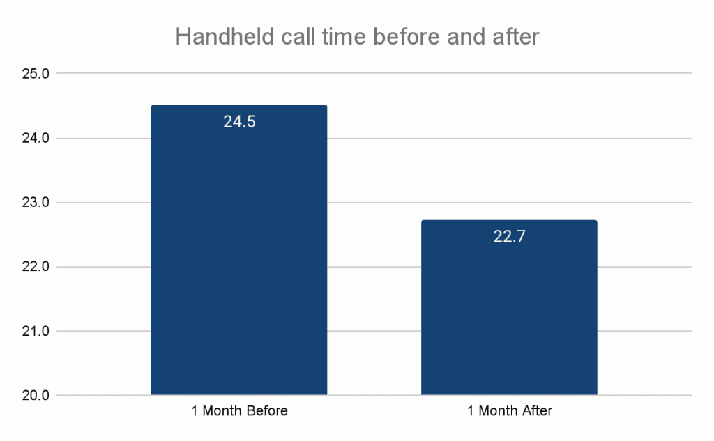 Handheld phone use, which increases crash risk by 135%, also decreased in the month after the law. In May 2025, Pennsylvania drivers spent an average of 25 seconds per hour interacting with their phones. One month after the law began, that number fell to 23 seconds per hour, a drop of 7.3%.